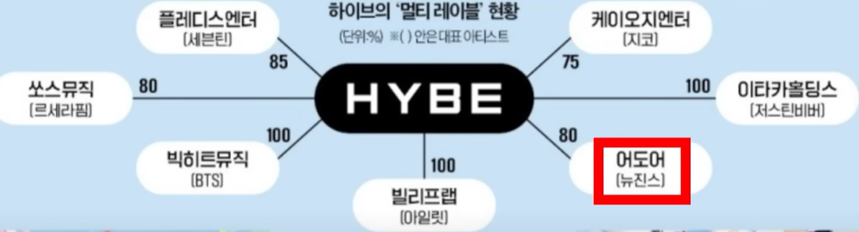 하지만 민대표는 작년 연말에 풋백옵션의 배수를 13배에서 30배로 올려달라고 하이브에 요구하며, 갈등이 시작된 것으로 보입니다. 또한, 풋백옵션이 적용되지 않은 나머지 5%에 대해서도 경업금지 조항때문에 마음대로 매각 할 수가 없어서 이를 풋백옵션을 적용해 달라고 요구를 했습니다.